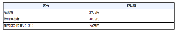 障害者控除の控除額は区分に応じて以下のとおりです。