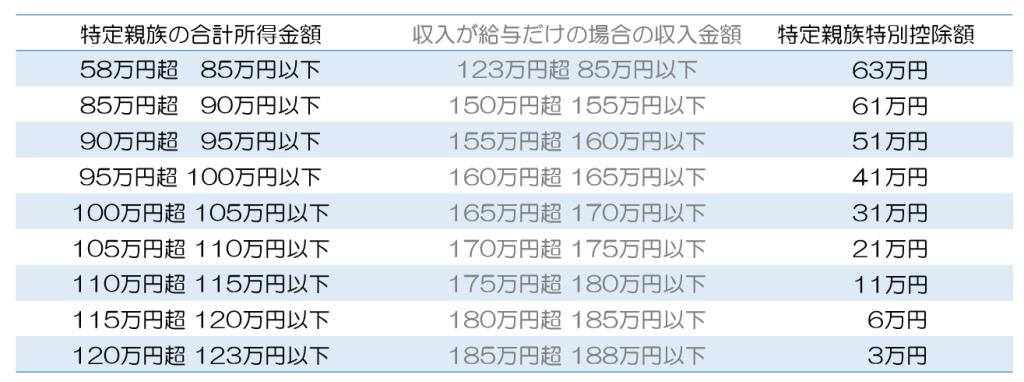 特定親族特別控除は、所得者が一定の要件を満たす親族を扶養している場合に、その親族の所得金額に応じて控除を受けられる制度です。