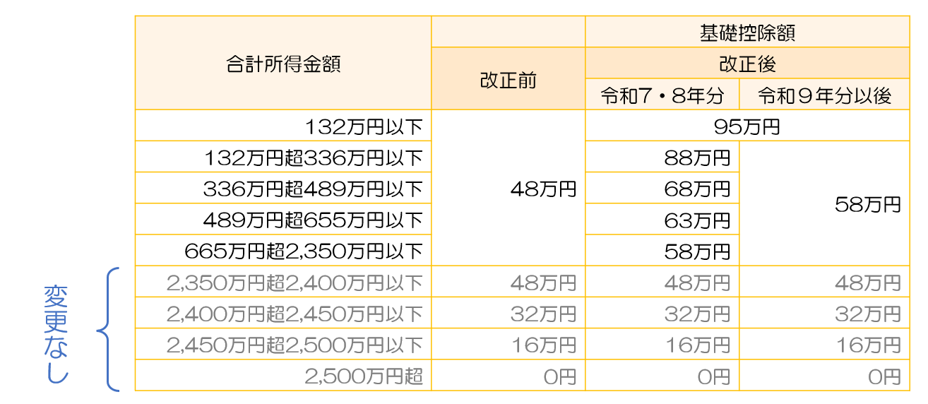 しかし、改正後は合計所得金額に応じて基礎控除額が段階的に設定されています。